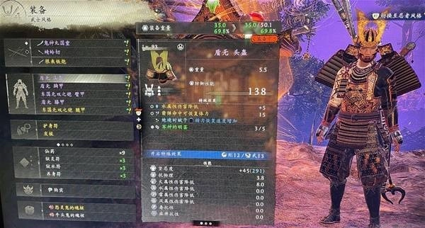 1.首先装备选择盾无三件套搭配东国三件套(其实也可以换成邪马台重甲,它的动作减伤效果更出色,但我个人觉得这个外观不太好看)