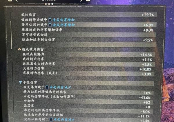 2.武家选择一个新选组的不可违背武士之道(近战加伤44%左右),再选一个加藤的动作减伤或者藤堂的加血都可以,对操作有信心的选本多的武技增伤或还有一个近战增伤