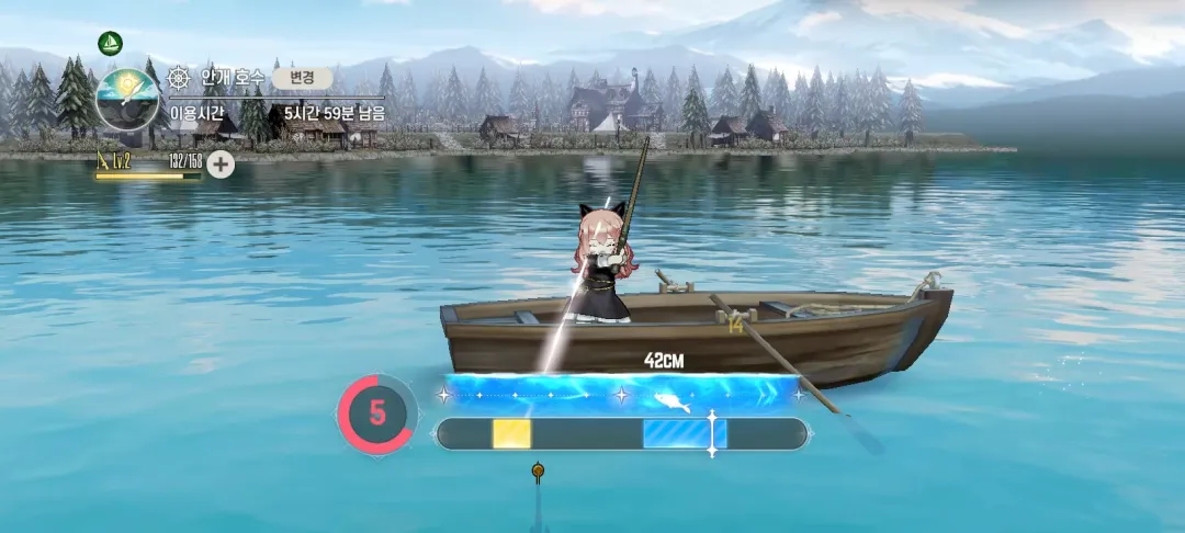 在船边长按抛竿按钮时,将会蓄力,放开按钮时就会抛出钓竿。蓄力数值越高,出现大型鱼类的机率就越高。