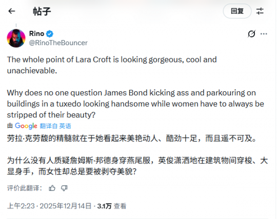 许多人强调,1996年的经典劳拉是偶像象征,拥有夸张的身材、模特般的外貌和自信,而不是2013–2018年《生存者三部曲》中那种“现实主义求生者”。