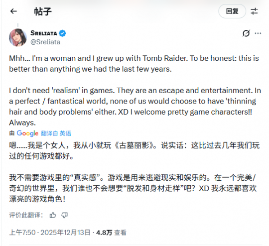 近日,社交媒体上围绕TGA 2025公布的《古墓丽影:亚特兰蒂斯遗迹》重制版女主角劳拉·克劳馥新形象的争议持续发酵。争议源于知名游戏记者Stella Chang(她在IGN任职且以电竞评论见长)的一条帖子,她认为新版劳拉的光鲜外观与“在亚特兰蒂斯丛林中为生存而战”的设定不符,指出角色妆容过于精致,缺乏应有的求生感。