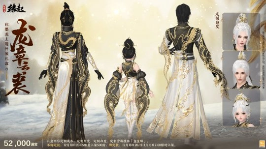 豪华版内含成衣+定制黑发+定制白发,售价38,000通宝,不绑定款12月18日20:07限量上架500份。