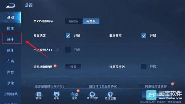 3、最后在战斗设置界面,将视野范围提示开启以及视野提示程度调到最低即可