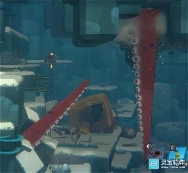 2、阶段二:触手位置前移,烟一冒立刻向后(左侧)游,躲在石头后面等触手缩回。