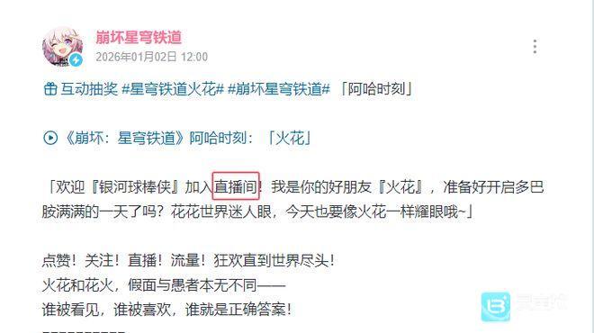 “花奈咪”生日会遭遇黑客入侵、观众与假主播整夜互动的离奇事件,其核心与“欢愉”命途的讽刺意味及反转内核高度契合。玩家猜测火花或许和这一事件有着深层关联,这不仅给角色增添了神秘氛围与故事厚度,更让版本更新后的剧情走向充满期待。