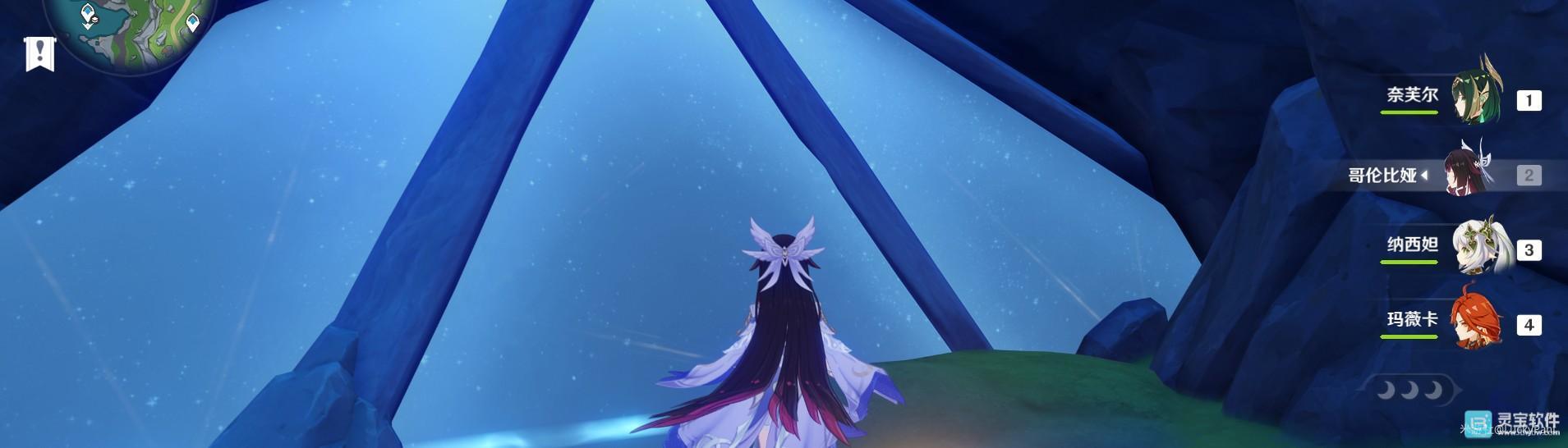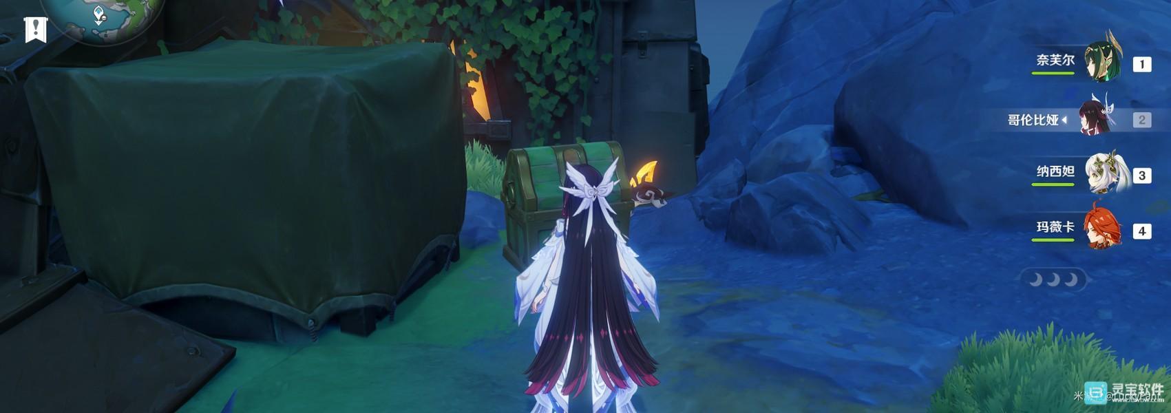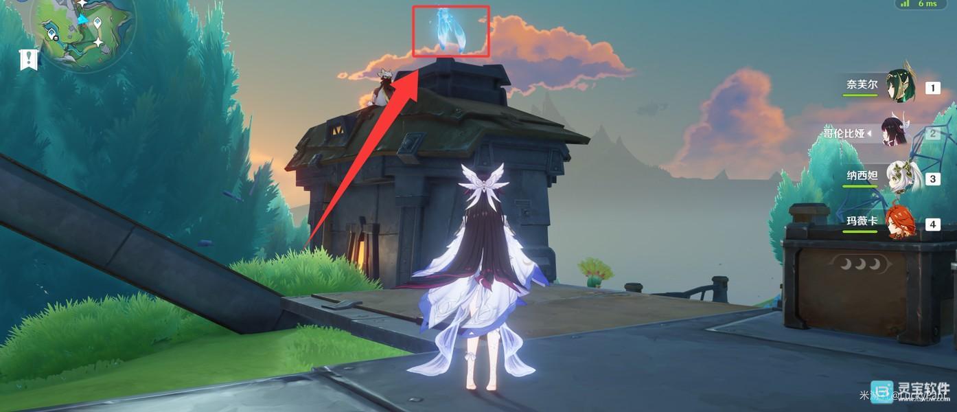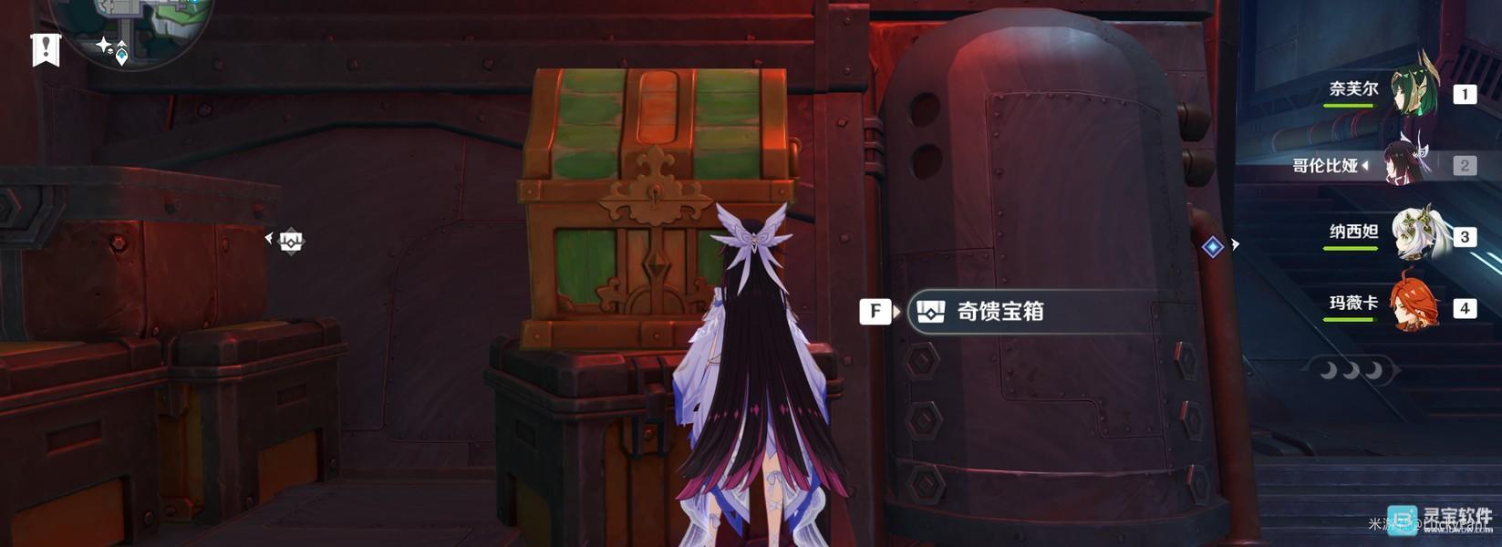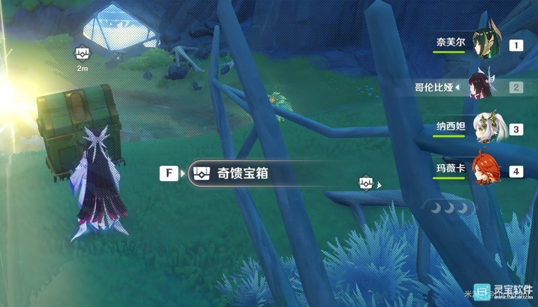 在此处接近月灵使其跟随,出现并收集所有月之微粒出现奇馈宝箱