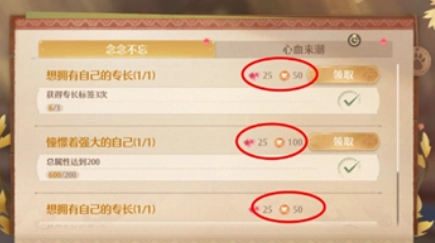 2、专长解锁:为巨兽获得专长标签3次,单次奖励25-50。