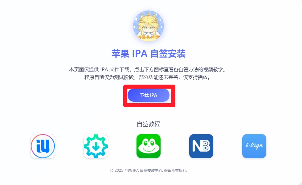 注意:仅提供IPA文件下载。点击下方图标查看各自签方法的视频教学。程序目前仅为测试阶段,部分功能还未完善,仅支持播放。