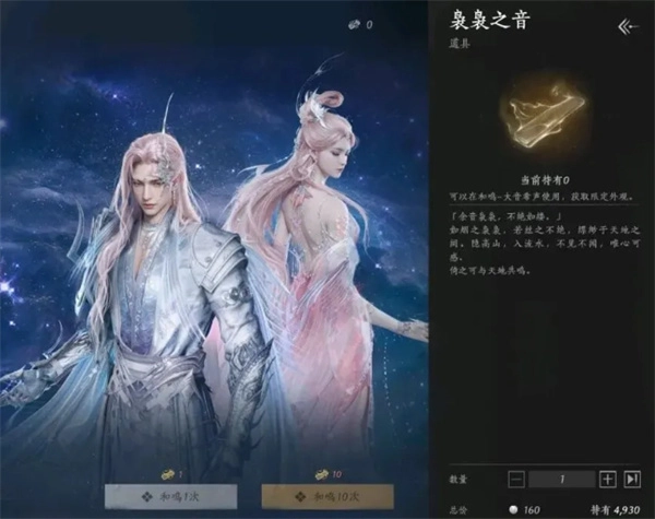1、接下来就是非绑定的袅袅,非绑定的袅袅抽到的八音窍是可以挂在销金窟里交易的,这点想来大多数玩家都知道,每抽一次需要花费160长鸣珠。
