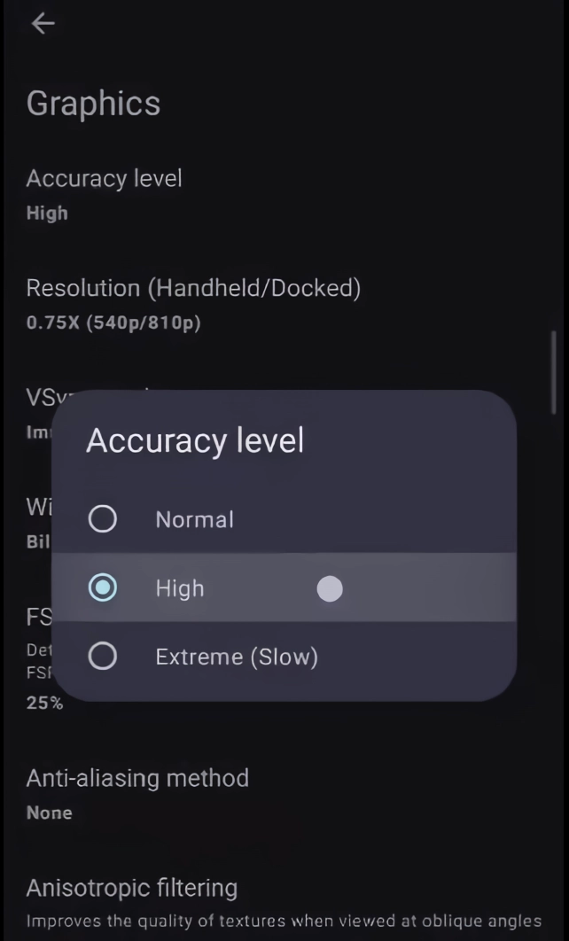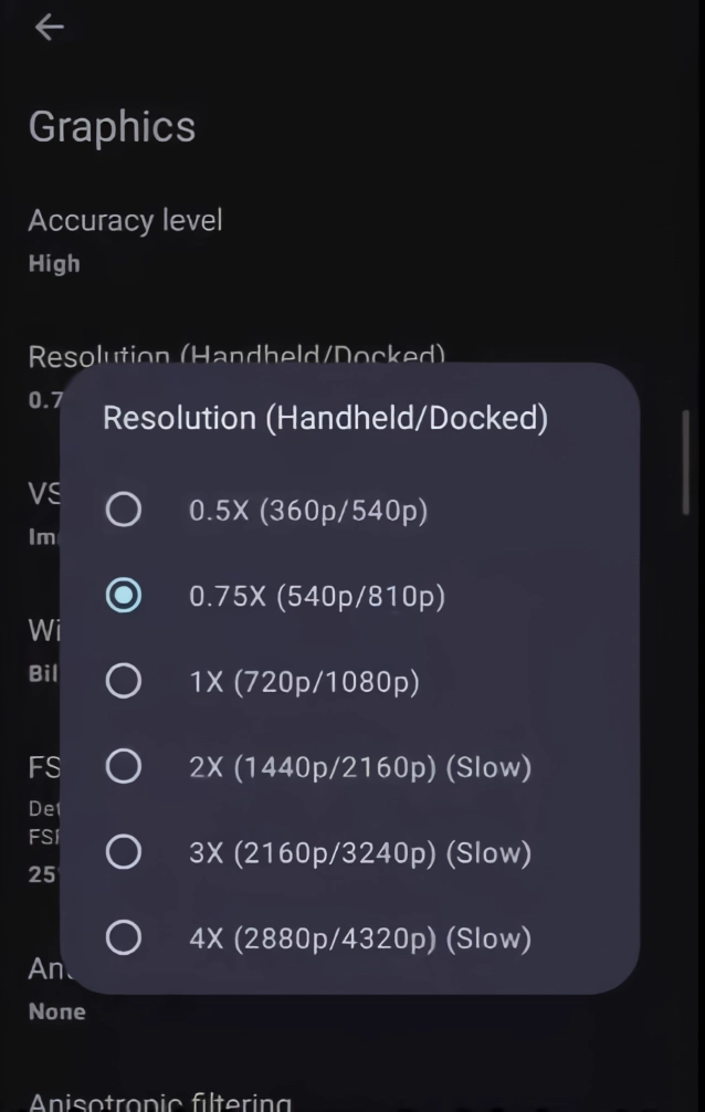 为了提升性能,分辨率建议始终设置为较低的0.75倍;要是使用的是低端手机,选择0.5倍的分辨率效果会更好。