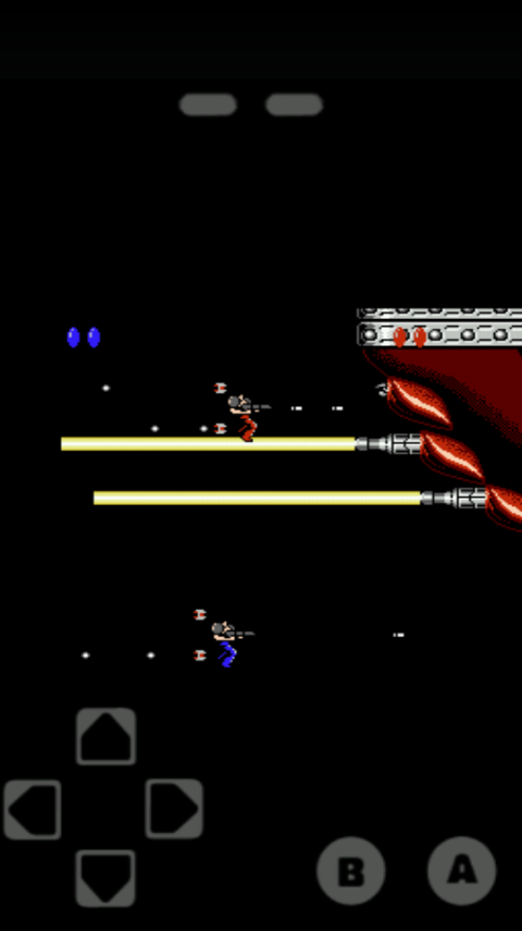 2、设置完游戏关卡以及玩法模式后直接即可进入游戏,点击B是攻击,点击A可隐身消除子弹伤害,点击上方右边的黑色杠是暂停游戏,再点击一下可继续游戏,游戏界面上方的左右俩边显示的是你和队友的生命血量。