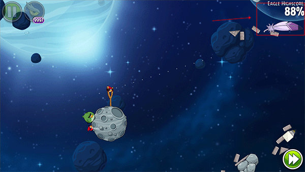 太空穿梭鸟(原本是黄色的三角形鸟)具备非凡的能力,当它飞行到半途时,只需轻触屏幕,它就能以直线冲刺的方式发起攻击!就像一枚导弹,以惊人的速度直冲绿猪而去,破坏力极强!然而,掌握加速时机相当困难,否则很容易偏离目标,无法实现精准打击。但是一旦熟练掌握了使用技巧,这只小鸟就会真正展现出它的愤怒,对木质结构的猪堡造成巨大的破坏。