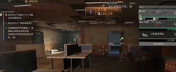 其实游戏中有一个任务也是要求我们前往巴夫工厂找到一把工厂的钥匙并且成功撤离。第一把钥匙是在卸货区旁边的厂长办公室里,这里会刷新一些比特币,还会有大金和小金,这个资源点的物资还是比较丰富的,但是来这里的路上或者是拿了资源出门很有可能会碰到敌人,所以也要最好战斗的准备。在整张地图搜刮的过程中,如果听到附近有敌人的动静,都是比较推荐大家先把敌人清掉,这样才能够放心找箱子嘛。