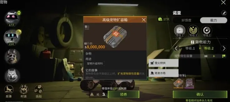 如图所示,升级宠物的巡回能力或者保险箱能力都需要如上的两种扩容箱(其一,不会同时消耗)