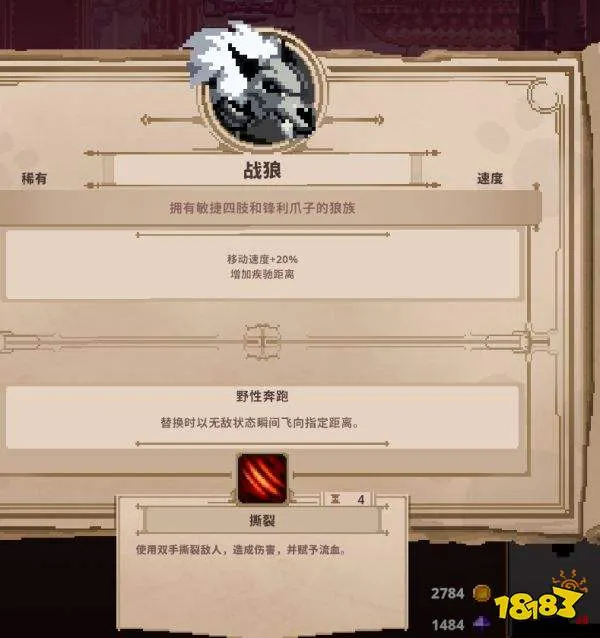 战狼头盖骨,稀有,速度。其实另一个大招连爪(没记住叫什么)比较厉害,但是速度型普遍伤害偏低,可是这个造型很酷。