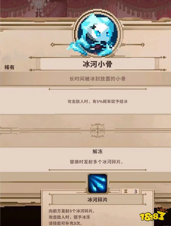 2、向前发射3枚中距离冰弹,附加冰冻,可储存3次