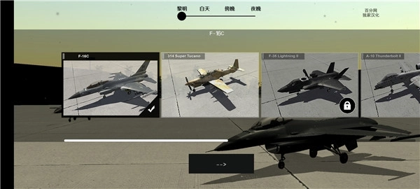 1、进入喷气式战斗机模拟器游戏,选择你想玩的战斗机;