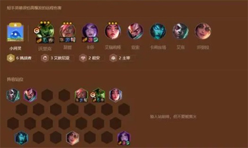 (1)6人口波比、提莫、加里奥、乌鸦、克烈、娑娜组成3约德尔人3德玛西亚2司令2术士的基础阵容。
