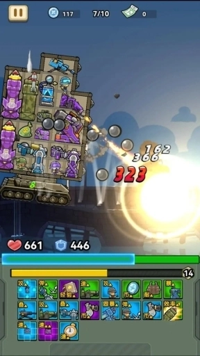 战车向前冲向敌人开炮,这款游戏由爱游科技开发,提供了丰富的关卡供玩家挑战。游戏开始时,玩家会得到一辆坦克,通过放置武器和士兵做好战斗准备。当两个相同的物品放在一起时,它们会合成一个更强大的道具。防御塔会自动攻击敌人,每波战斗结束后,玩家可以进行休整,并再次获得新的格子和装备。
