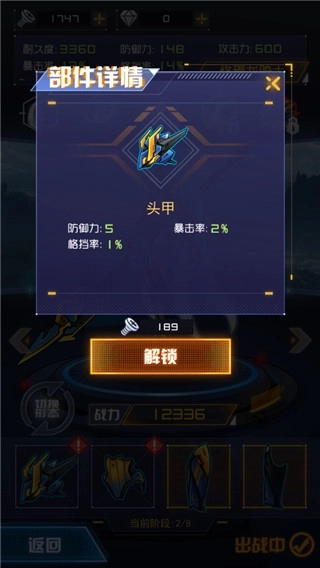 5、根据机甲的需求进行合理升级,点击解锁即为升级。