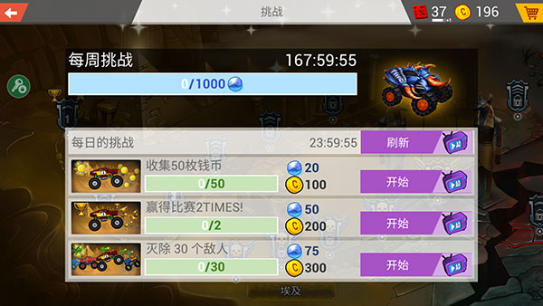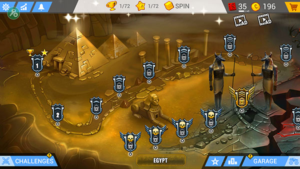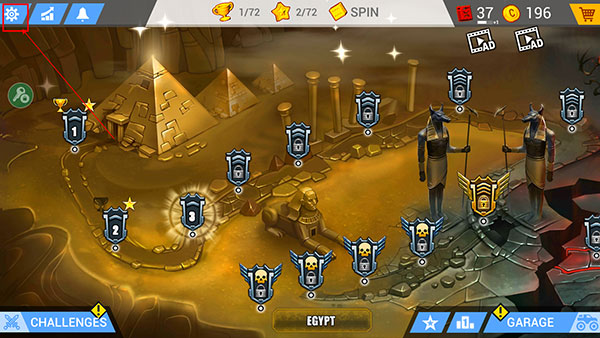 1进入游戏后,挑选一个关卡开始挑战,然后点击“GARAGE”。