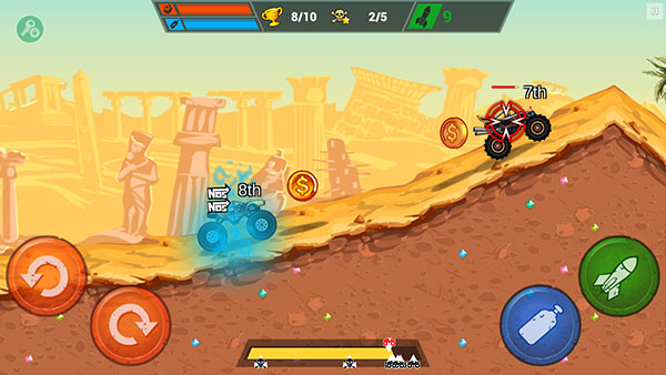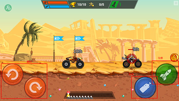 3、来到赛道,左边是翻转,右边是喷气加速和导弹;