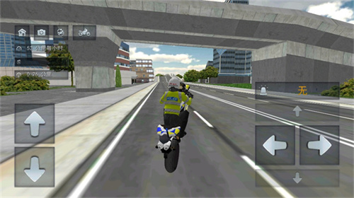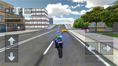 2、以街头巡逻玩法为例,玩家在街头巡逻模式将以第三人称驾驶摩托车进行驾驶,利用方向键完成驾驶;