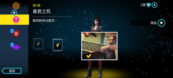 杰森贝拉凯伦在酒吧喝酒庆祝被弗兰克的人砸场,双方发生枪战。先用枪关枪消灭弗兰克的走狗,长按右键狂扫就行,人越打越多,贝拉会提供手榴弹,凯伦随后中弹,贝拉带凯伦先闪,杰森殿后,结果被弗兰克的人用火箭筒轰晕,杰森也落入弗兰克手中成为弗兰克的爪牙。
