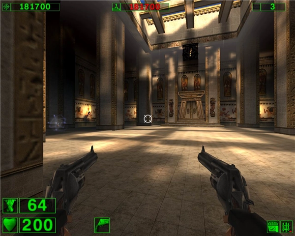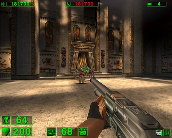 《英雄萨姆1》的故事背景设定在埃及古老的金字塔区域,Sam是挺身而出的唯一英雄,肩负着抵御外星怪物入侵的重任。玩家要在危机四伏的环境里艰难求生,直至消灭所有敌人。游戏中的敌人类型十分丰富,涵盖了各类外星恶魔与怪兽,它们会从四面八方发起攻击——有的在远处射击,有的则径直冲向玩家,玩家必须时刻留意保持自身血量处于健康状态。
