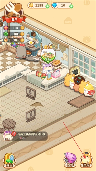以软萌仓鼠作为核心的主角与顾客形象,角色造型设计得十分可爱有趣,再搭配上温馨的商业街场景,由此营造出治愈系的视觉氛围,让整个经营过程都充满轻松愉悦的感受,适合不同年龄段的玩家。