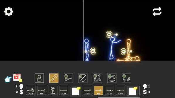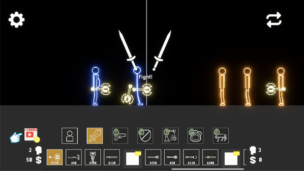 2、多样化的物品和强大的道具系统,为玩家的火柴人装备了新的武器,增强角色的实力。