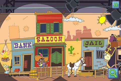 用枪射击水桶,右侧堆放杂物的横条,小丑的帽子,马头,左边的云朵,左上方的布门,枪左侧的石头,左边的窗户。