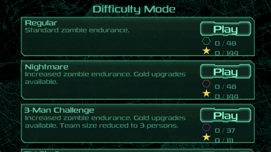 4个难度模式,普通,噩梦,3人的挑战,挑战电视
