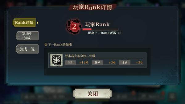 可以确认当前已获取的经验值、升级至下一个Rank所需的经验值,以及Rank提升后能够得到的加成。