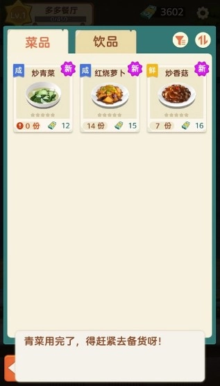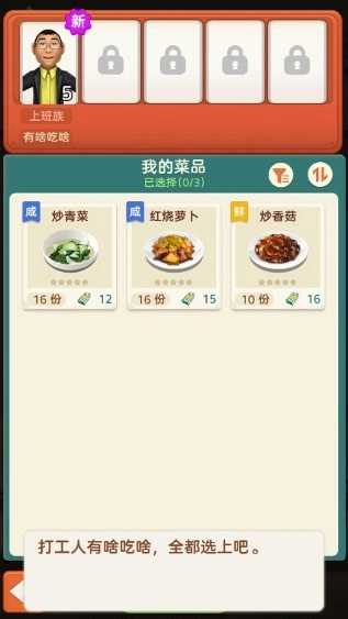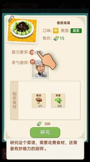随着经营愈发熟练,仅靠现有菜品显然无法满足更多顾客的需求,所以你得研究开发新菜谱。在“菜谱”里,不仅列出了新品所需的详细食材,还需要具备炒菜能力的厨师来制作。