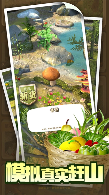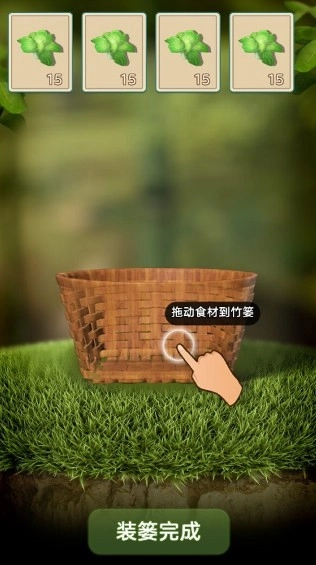 点击清除杂草,还能额外获取宝贝。采集完食材后,需要把食材装进竹篓,将食材拖动到竹篓里,等所有食材都装填完毕就能下山了。