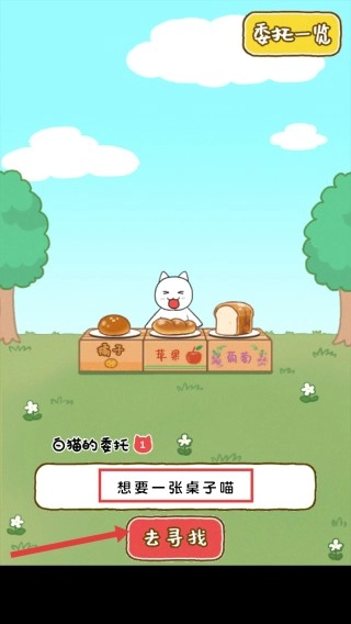 在游戏界面里,找到白猫的委托任务,点击【去寻找】按钮,就能进入寻找物品的场景了。