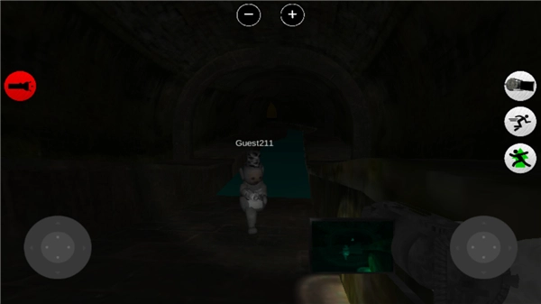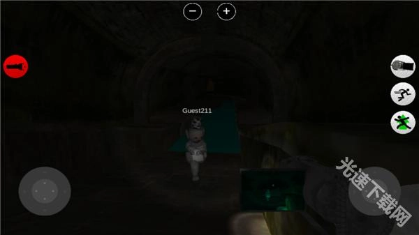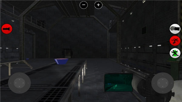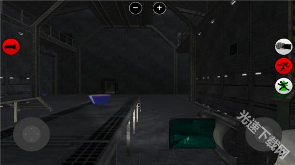 正式进入游戏后,左侧是方向控制键,右侧负责视角操控,那里的按钮按顺序分别是灯光开关、摄像机放大以及人物的跳跃和奔跑键。