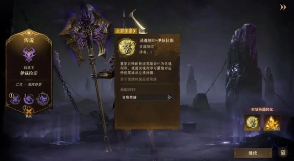 重复获取到传说英雄时,将获得同名英雄的灵魂刻印