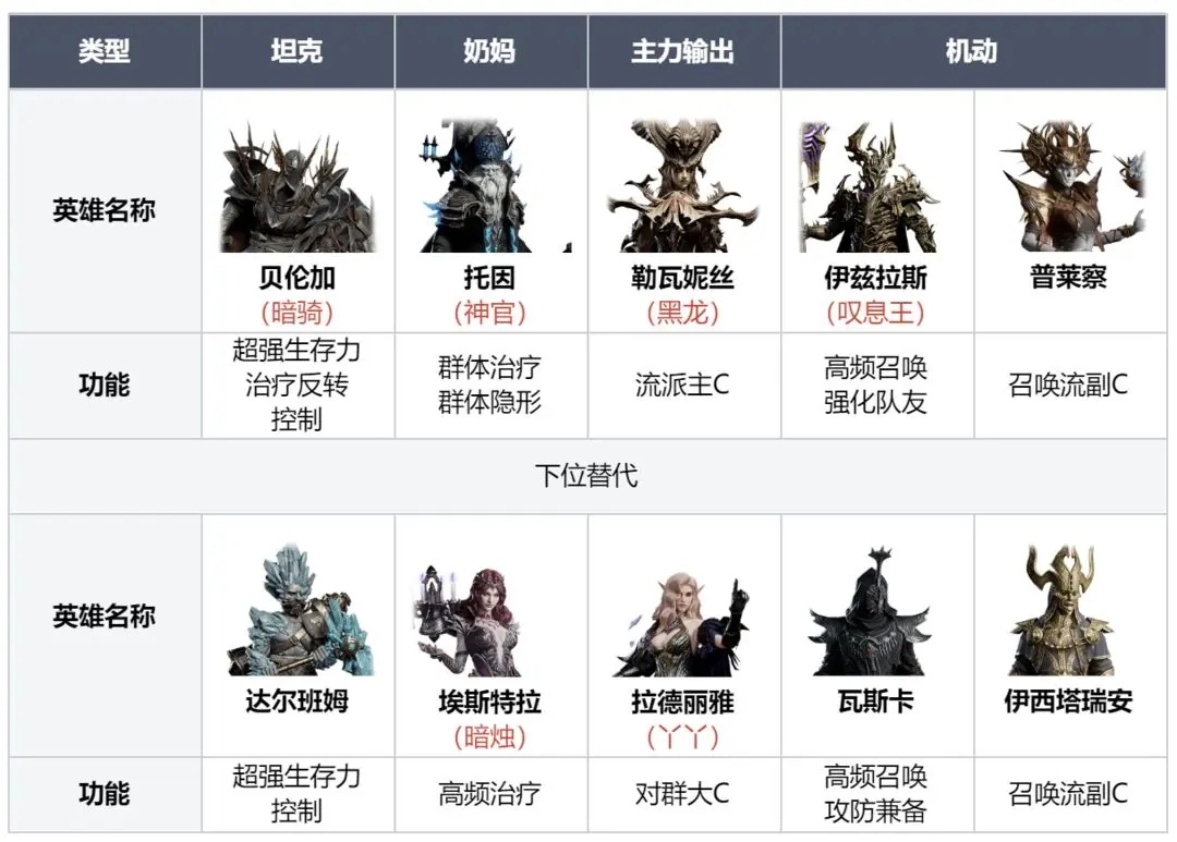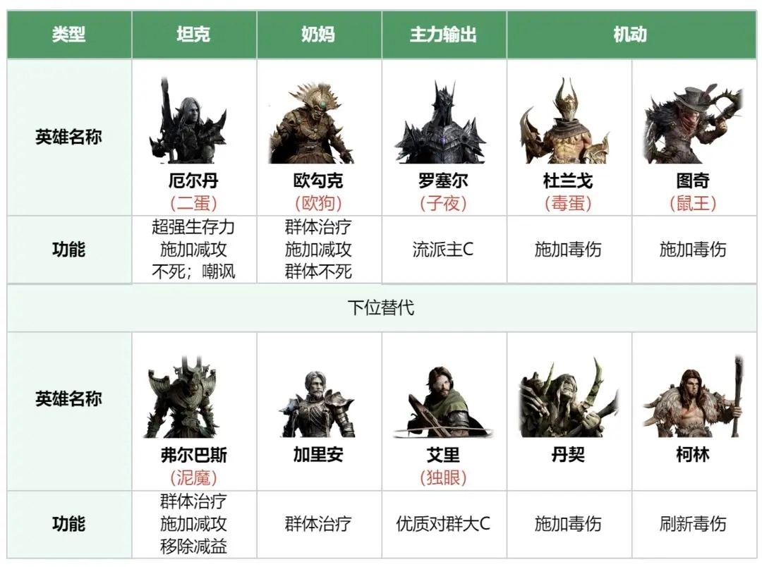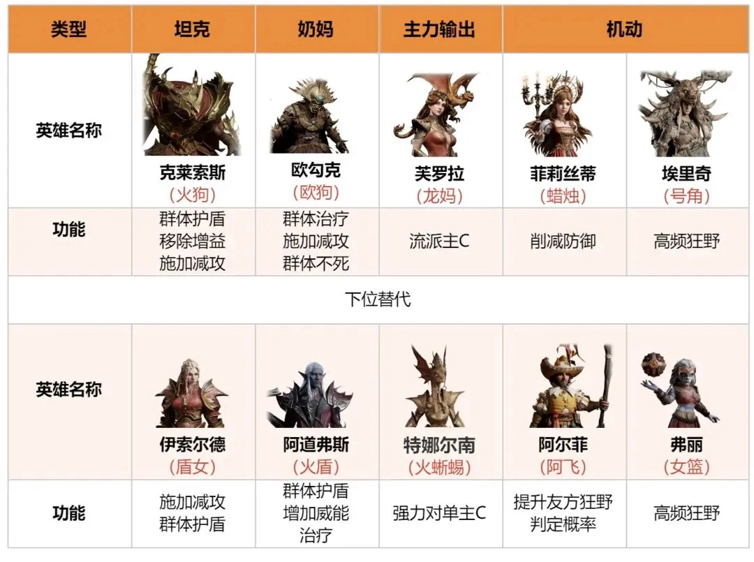 前期配队可按以下公式构建: