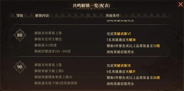 共鸣等级每次突破均会解锁更高养成上限