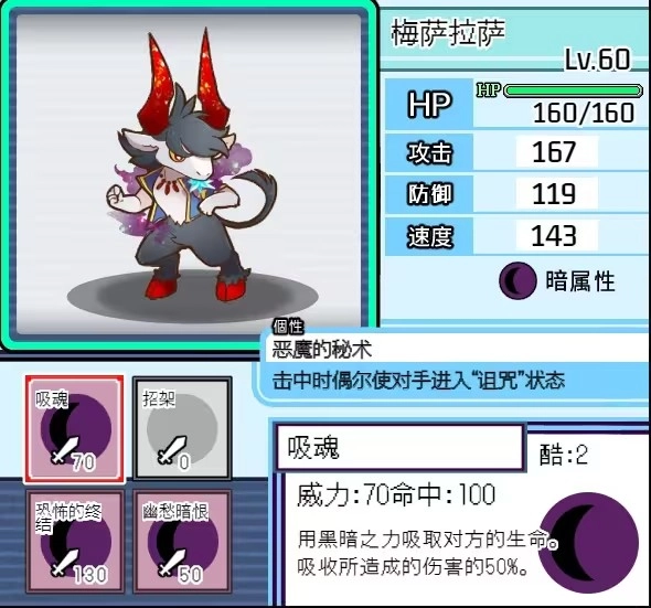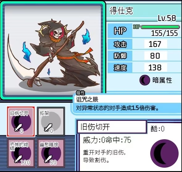 评价:因为暗系那个超模道馆技的存在,他保底能有3分。全游戏里带异常增伤被动的怪总共三个,他的特点是会用守住技能来拖CD,但在暗系的这些角色里,他不算好用的。