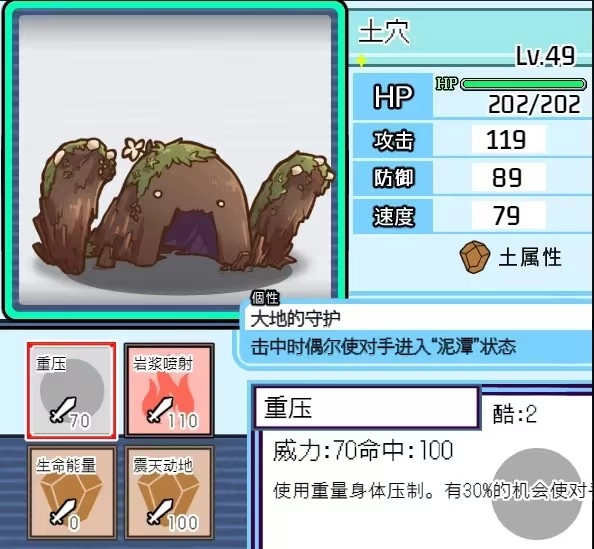 这个火盾挺有意思的,游戏前期大家基本都会抓一只,靠它不用作弊就能打赢第一次遇到的里奥。对战塔上它表现也很出色,被动能让对手挂烧伤,自身既有回血又有吸血效果,用火系道馆的技能还能强化一段,而且它还会诅咒技能。