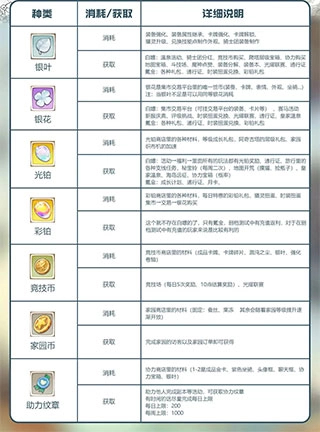 为了让大家能第一时间了解各类基础货币的作用、消耗与获取方式,从而获得更好的游戏体验,我整理了一张详细的表格图片,方便大家查看。