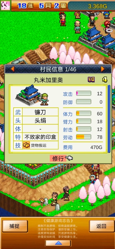 玩了这么久,估计各位玩家该担心体力消耗的问题了吧。但请大家放心,这款游戏里根本没有体力限制,终于能放开手脚尽情玩啦!不过在我看来,真正影响游戏进度的其实是金钱——没钱的话啥也干不了,只能干等着村子里慢慢赚钱。而且随着时间推移,游戏画面会从樱花纷飞的春天,一路变化到白雪皑皑的冬天,玩家能真切感受到村落的四季流转,制作团队这波真的很用心啊!
