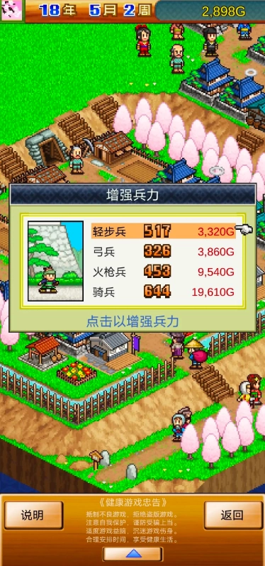 教程结束后,玩家便要正式开启属于自己的称霸征程。起初我们势单力薄,而提升实力处处都要花钱,开销着实不小。所以村落经营在这款游戏里是相当关键的一环。游戏前期,玩家能安排村民开垦农田获取食材,进而收集并售卖原材料;到了中期村子规模扩大后,还能开展伐木和挖矿活动。但需要留意的是,在本游戏中,除了农田可以在建筑项目里随意建造外,可供伐木的树木数量和用于采矿的坑道数量都是固定的,没办法增加。这或许是游戏想向我们传递的环保理念吧。不过仅仅依靠售卖原料,赚钱的速度相对较慢,因此我们得寻找新的赚钱途径了。