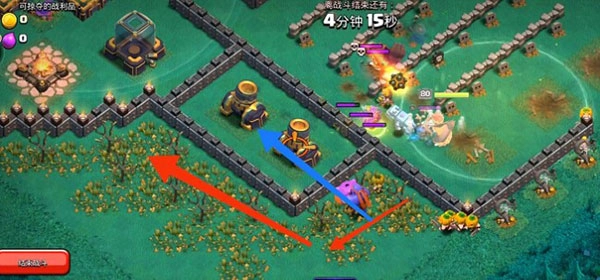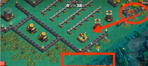 右侧红圈区域内有两名下女武神,女武神会自行破坏墙体,墙体被破坏后,她们会转而攻击圣水罐。