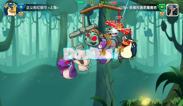 企鹅:猎杀,扔出雪球对敌方造成伤害且冰冻,冰冻回合与剩余动物有关。