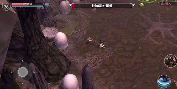 技能一:督瑞特会潜入地下追踪玩家,此状态下玩家无法对其发起攻击,并且督瑞特会锁定目标从地下跃出,跳跃次数随机为1到3次,每次钻出时都会产生小范围伤害。一旦命中玩家,该技能便会终止。