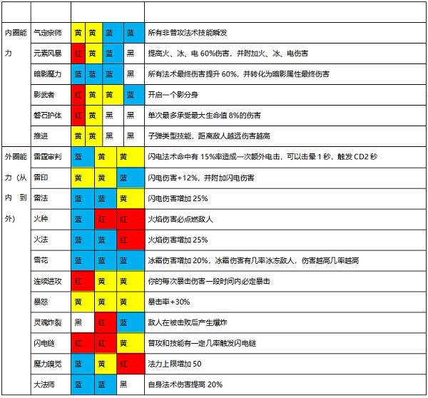 元素风暴(颜色似乎是红、黄、蓝、黑):雷、火、冰这三种属性的伤害会提升60%;